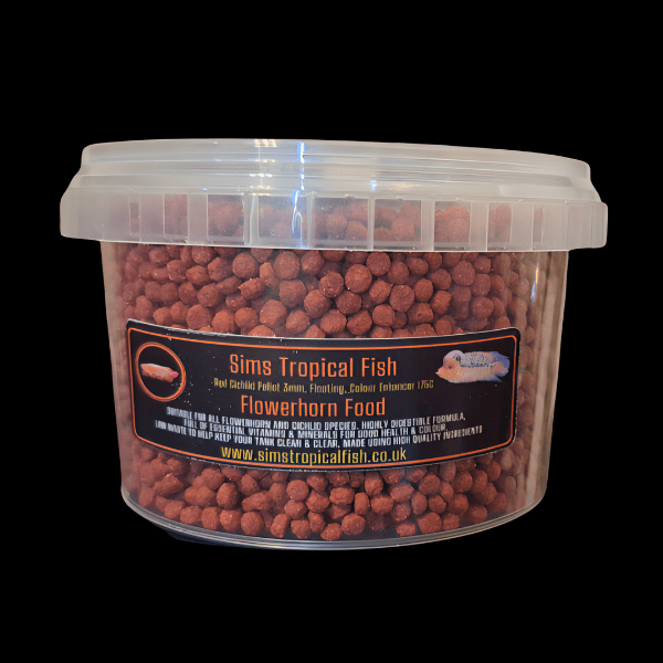 Flowerhorns are omnivorous with a heavy emphasis on protein. A varied diet ensures health, growth, and vibrant colour: