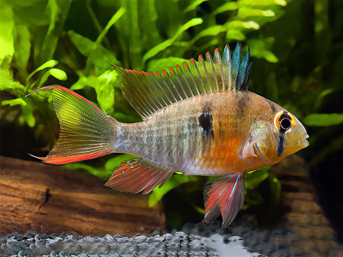 The Bolivian Ram is a rather gregarious species with a unique swimming style where it will dart at high speeds before instantly coming to a stop. They are fun to watch and relatively easy to care for.