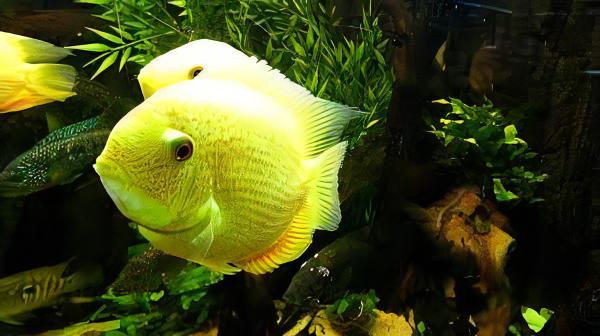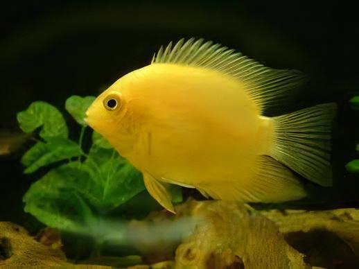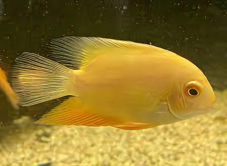 The Green Severum is a peaceful species, suitable for communities of non-aggressive medium-large sized fish. In the wild, the gentle Green Severum can be found in slow-moving waters packed with heavy with vegetation. Therefore the aquarium should include plenty of robust plant species along with numerous rocky caves and bogwood pieces. Green Severums can be kept in groups or pairs, but should a pair choose to spawn in a community setting, they will become much more aggressive towards the other fish. Ideally the tank will be at least 4ft long with lots of visual barriers for the other fish to escape the Green Severums attentions. Male fish can be sexed by the presence of cheek markings lacking in the smaller females. If the male seems to overly harass the female, many aquarists find that adding a couple more females will help to spread the brunt of the aggression. After a time, these fish learn to recognise their owner and often come to the glass to greet them or wait for food. A gold variety of this species is also available.