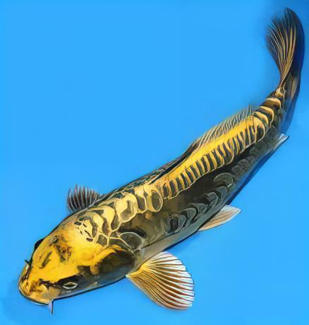 Bred by mating a wild mirror carp with a metallic Ogon koi, the resulting fish is a solid tone in either cream, silver, or gold, with long fins and a stunning overall bodily composition.