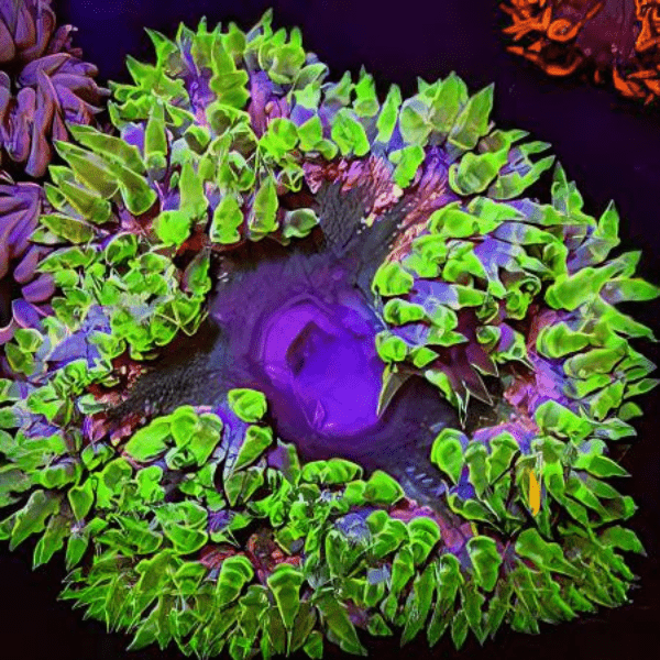 Carnivorous – thrives on mysis shrimp, brine shrimp, finely chopped seafood, and other meaty marine foods, while also benefiting from photosynthesis under strong reef lighting.