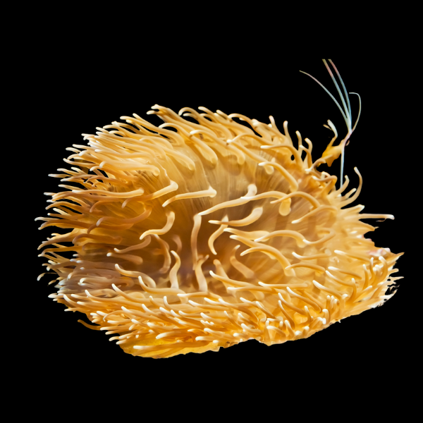 Compatible with clownfish and other non-aggressive reef-safe fish. Avoid housing with fish or invertebrates that may nip at or disturb the anemone.