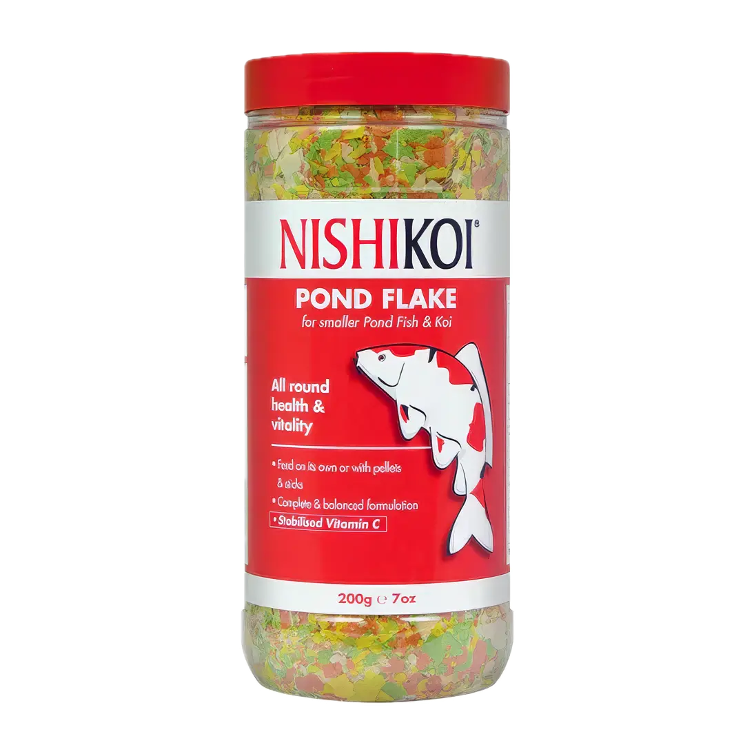 Nishikoi Pond Flake 200g is a premium pond fish food formulated to provide balanced nutrition, enhance color, and promote the overall health of your pond fish.