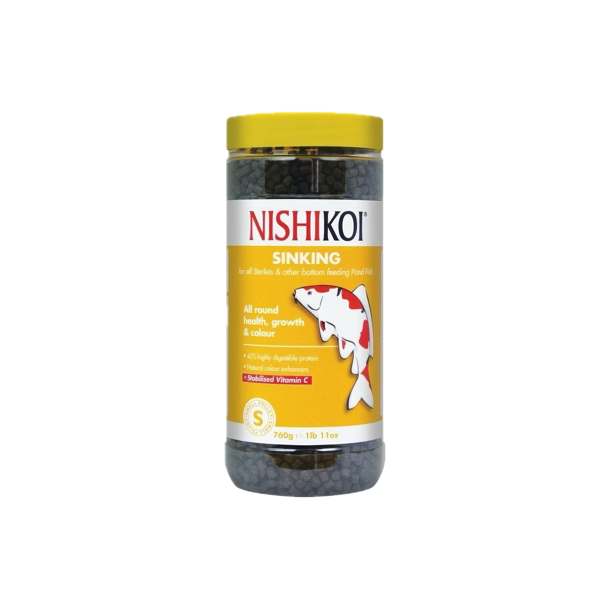 Nishikoi Sinking Pellet Small 760g is a premium pond fish food formulated to provide balanced nutrition, enhance color, and promote the overall health of your pond fish.