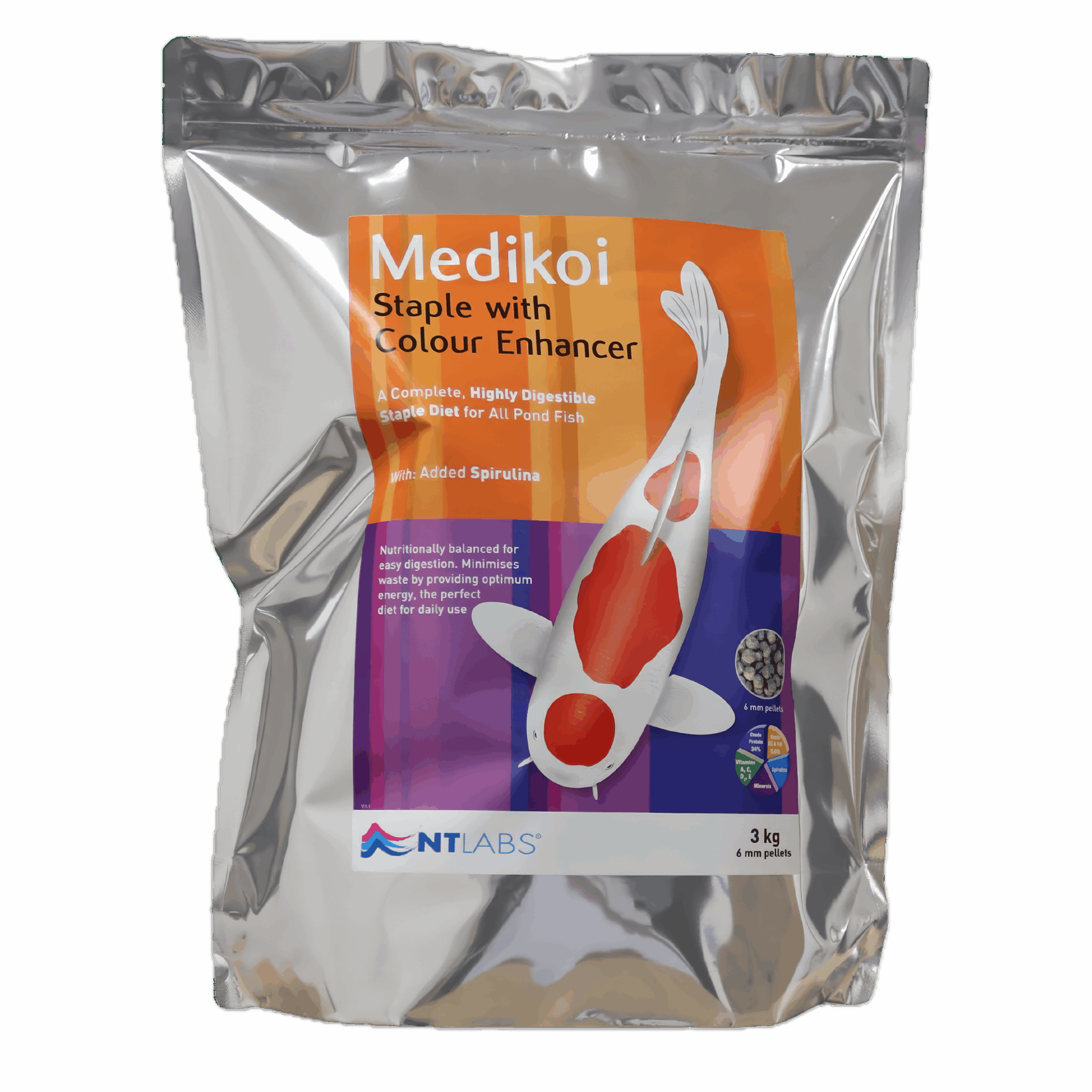 NT Labs Medikoi Staple 6mm Food 3kg is a premium pond fish food formulated to provide balanced nutrition, enhance color, and promote the overall health of your pond fish.
