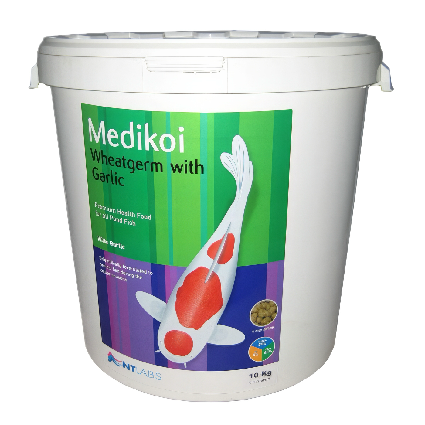 NT Labs Medikoi Wheatgerm with Garlic 5kg is a premium pond fish food formulated to provide balanced nutrition, enhance color, and promote the overall health of your pond fish.