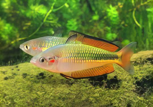 Overview: Peaceful, active fish. Rainbowfish are generally hardy and easy to care for. Rainbowfish are truly unique in that the males of most species have a bright iridescent strip running from the top of the mouth up over the ridge of the back and continuing to the dorsal fin. Males frequently “flash” this bright strip on-and-off in absolutely stunning displays. When they flash, it looks like a neon light is being turned on and off. This, combined with the amazing coloration of many species, is something truly special that is not to be missed. Fortunately, these fish display and flash frequently.