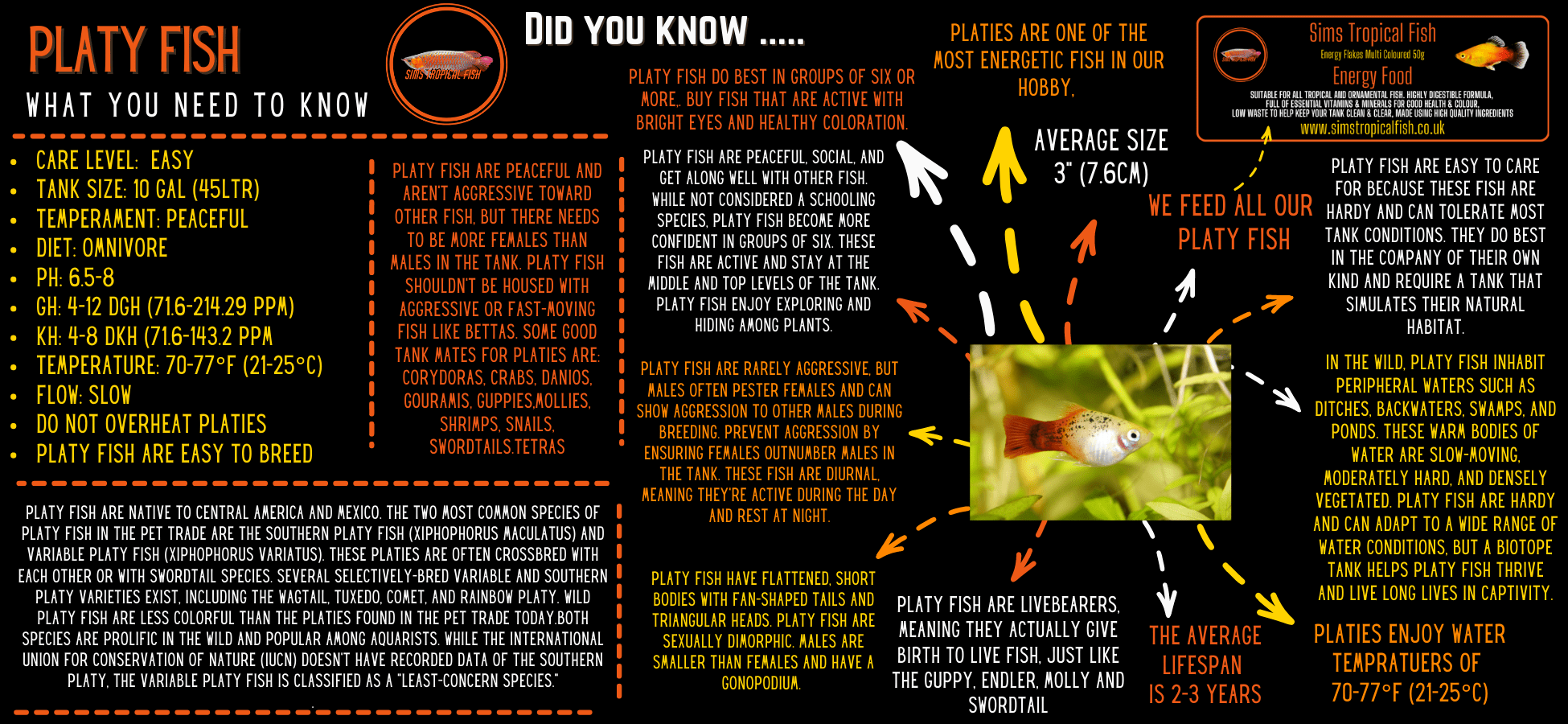 Experience Level: Perfect for aquarists of all skill levels, including beginners, Platys are hardy, adaptable, and relatively low-maintenance. Their tolerance for a range of water conditions makes them an excellent choice for novice and experienced hobbyists alike.