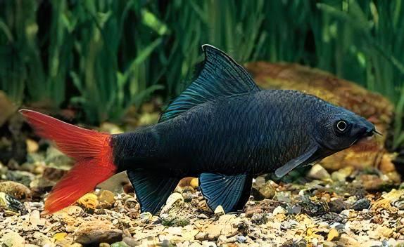Overview: The Red Tailed Black Shark, also known as Labeo Bicolor, is a striking freshwater fish highly sought after for its vibrant coloration and sleek appearance. Its distinctive black body, accented by a vibrant red tail, makes it a captivating addition to any aquarium.