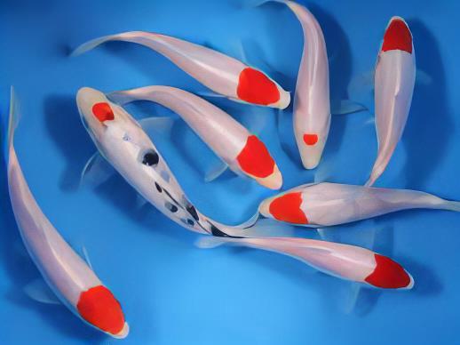Pure Tancho (tan-CHO) koi are only formally recognised to be sub-varieties of the Gosanke koi, that is, Kohaku, Sanke and Showa koi but the pattern itself can be seen in many other varieties including Goshiki and Hariwake koi.
